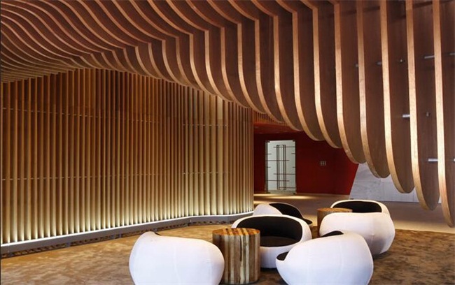 产品具有起伏的弧度,安装时采用不同的颜色搭配可以营造出和普通铝方通所不同的效果。同时,由于铝方通是通透式的,可以把灯具,空调系统,消防设备置于天花板内,以到达整体一致的的完美视觉效果。